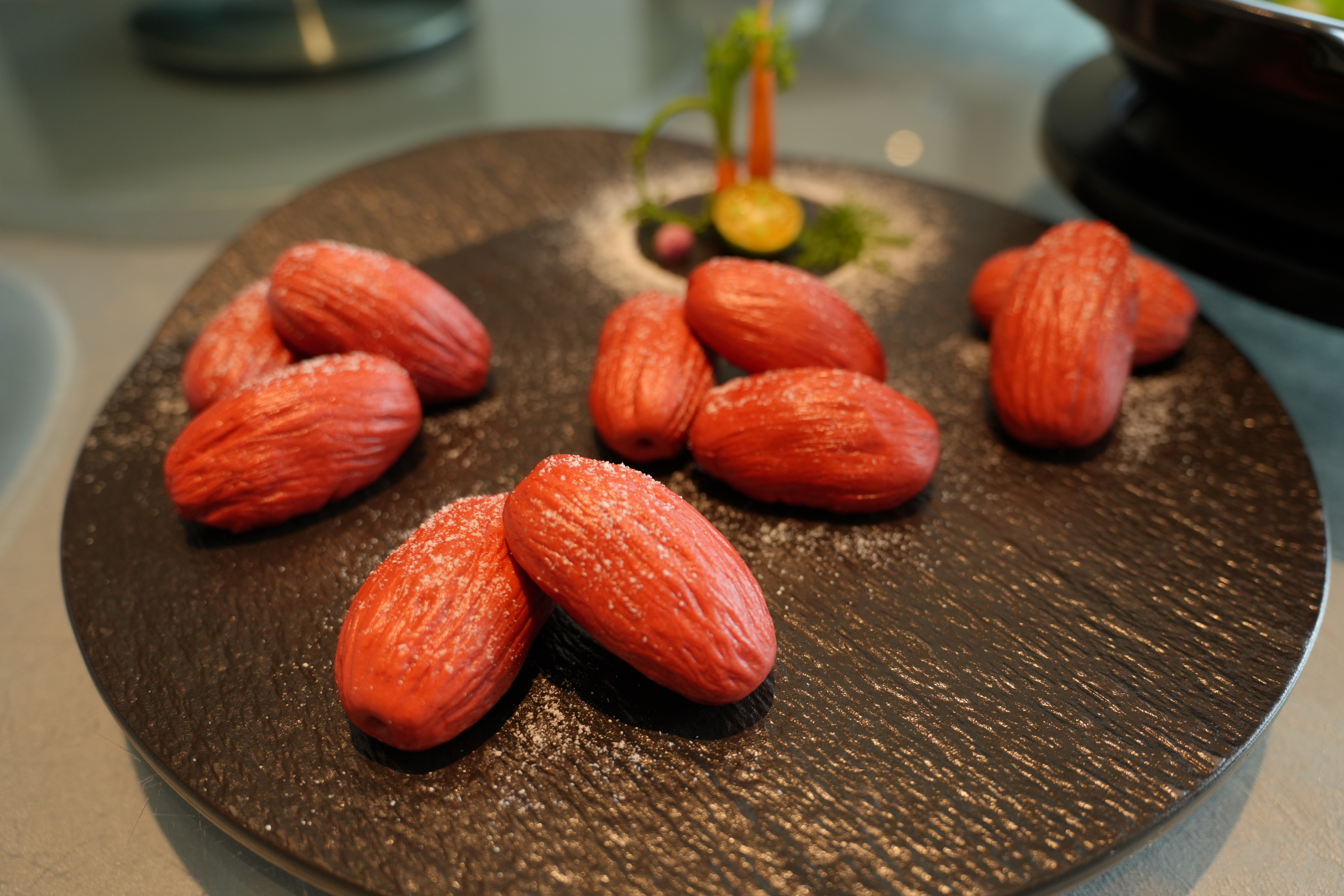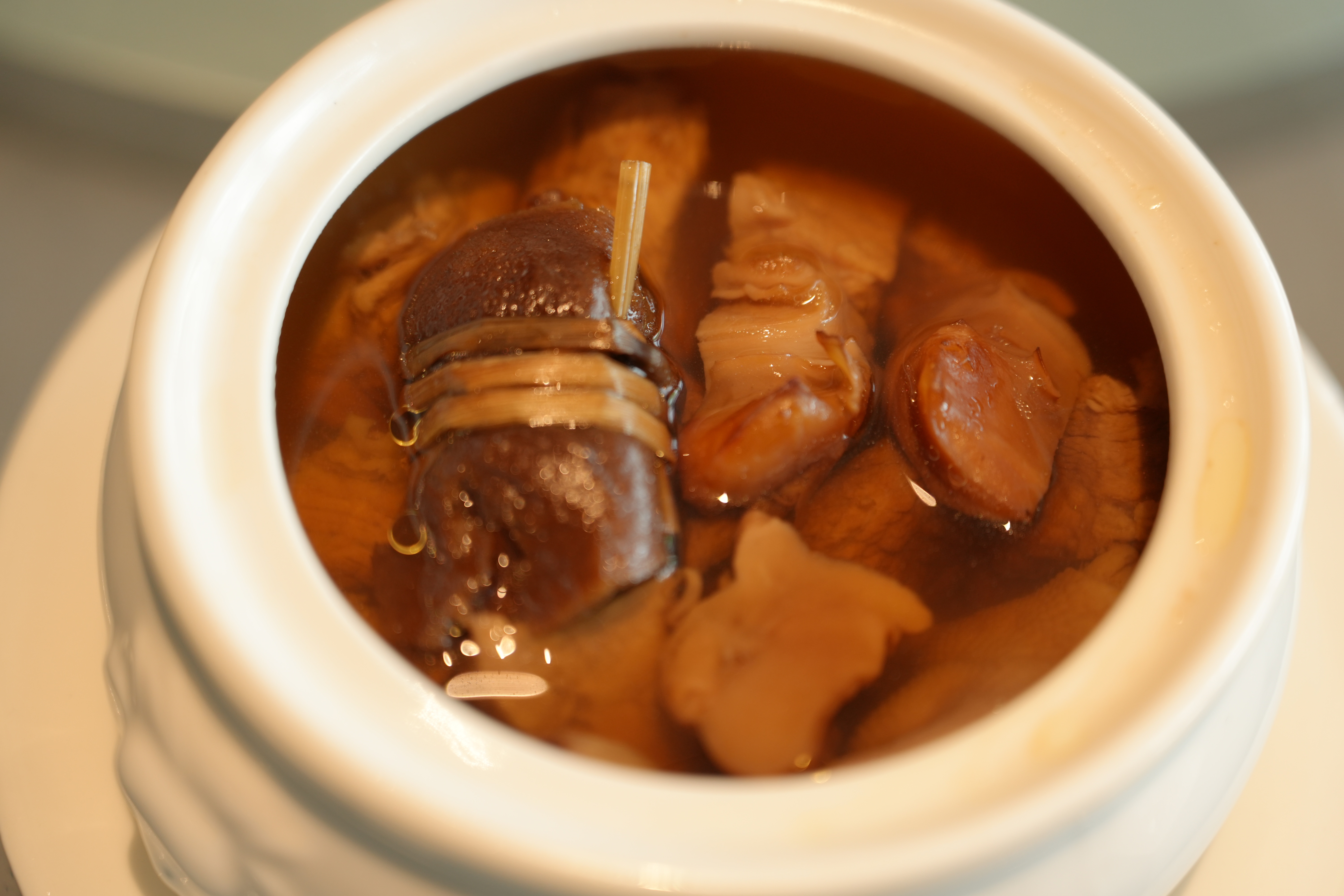 广东三宝炖海螺则将新会陈皮、老姜、禾秆草与海螺慢炖数小时,汤色清澈却滋味醇厚。创新元素在象形红枣包上表现得尤为巧妙。外形逼真可爱,内馅却突破传统,以低糖配方适应现代健康需求。而选用清远鸡、韶关胡须鸡烹饪而成的金丝姜蓉爽皮鸡,则在传统白切鸡基础上,以炸姜丝提升口感层次,鸡皮爽脆,肉质鲜嫩。