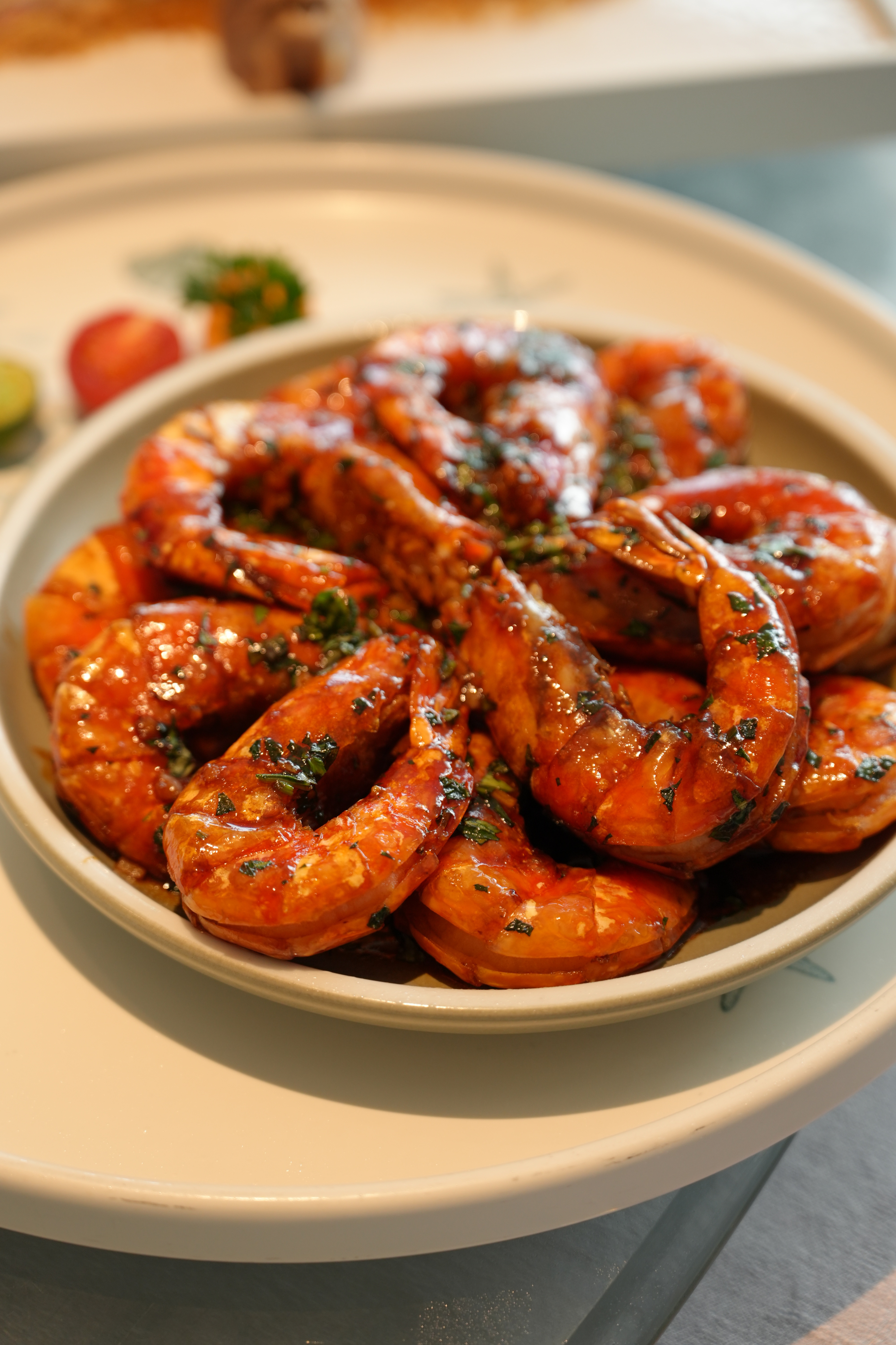 海鲜菜式展现了粤菜对“鲜”的极致追求。金不换大节虾采用急火快炒,九层塔的香气瞬间锁入虾肉。“虾很新鲜,”食客评价道,“金不换的香味和虾的鲜甜结合得恰到好处。”