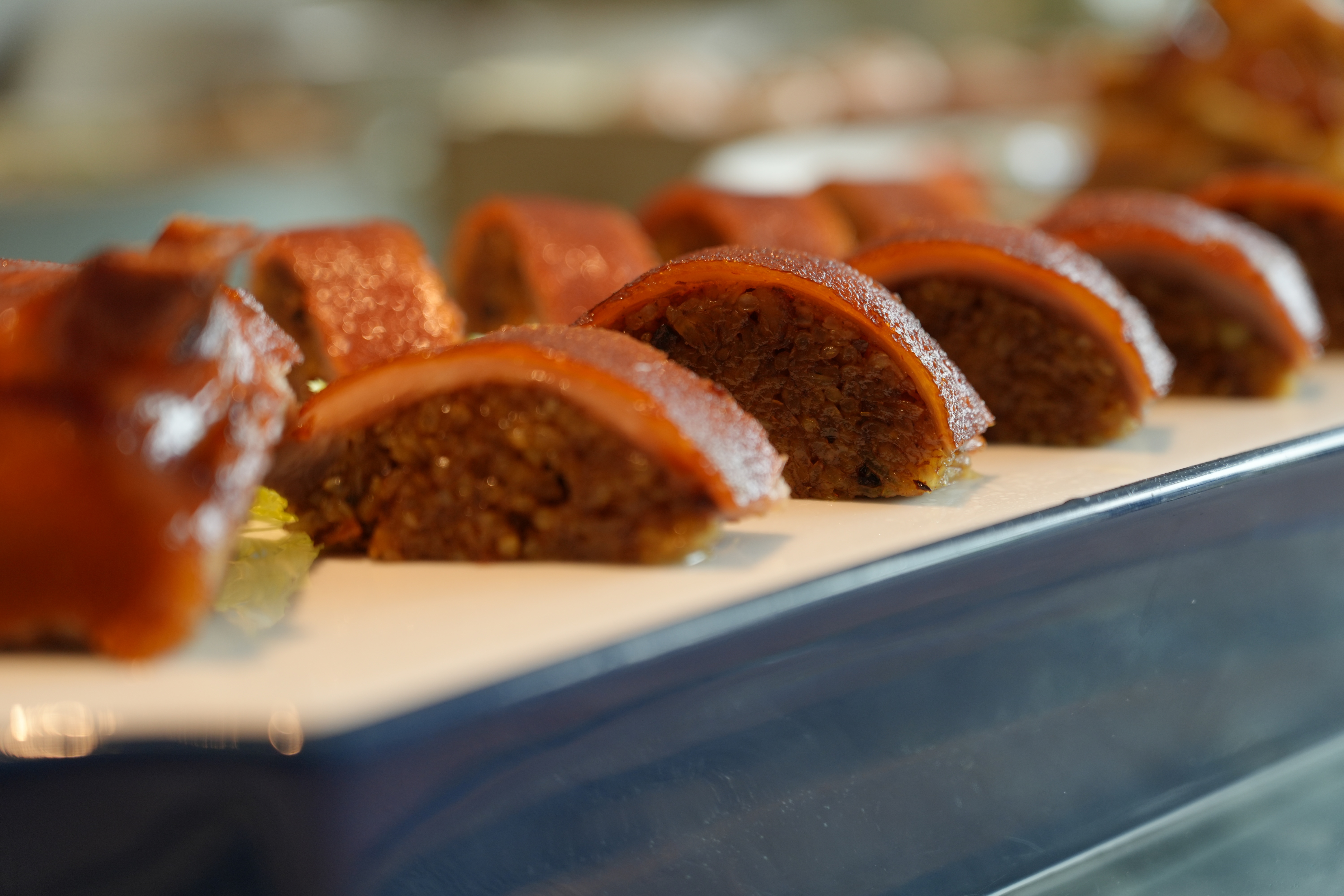 最具代表性的当属炭烧脆皮有米猪。这道菜需将糯米酿入猪颈肉,先蒸后烤。刚出炉时脆皮“咔哧”作响,内里糯米吸饱肉汁。一位品尝后的市民赞叹道:“皮脆脆的,糯米糯糯的,还很香!这种传统做法现在很少见了。”