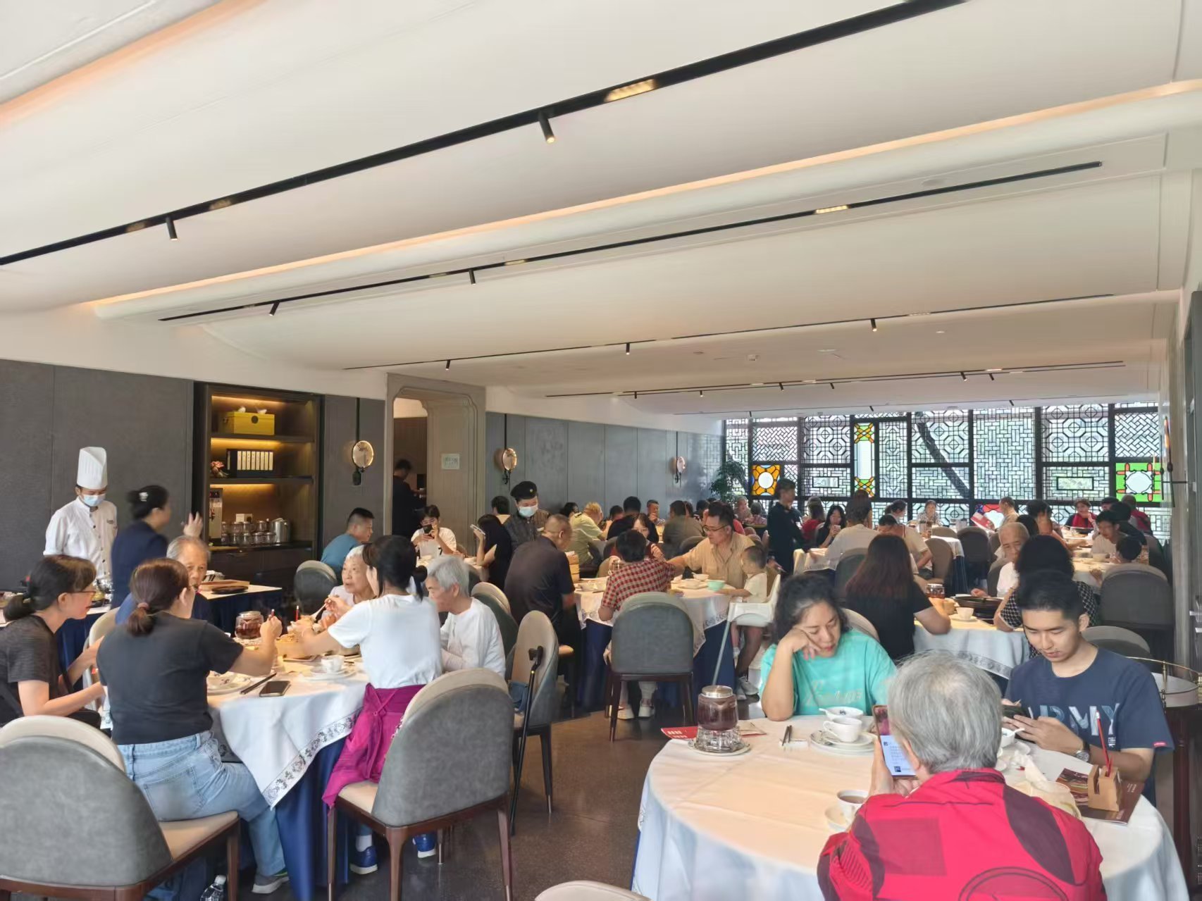 正值周末,北京路商圈人流如织,文明集市的热度蔓延至广州酒家店内。大堂里座无虚席,门口还排起了等位的长队。许多食客专程为“文明集市一桌菜”而来,一边翻阅菜单一边讨论菜式典故。