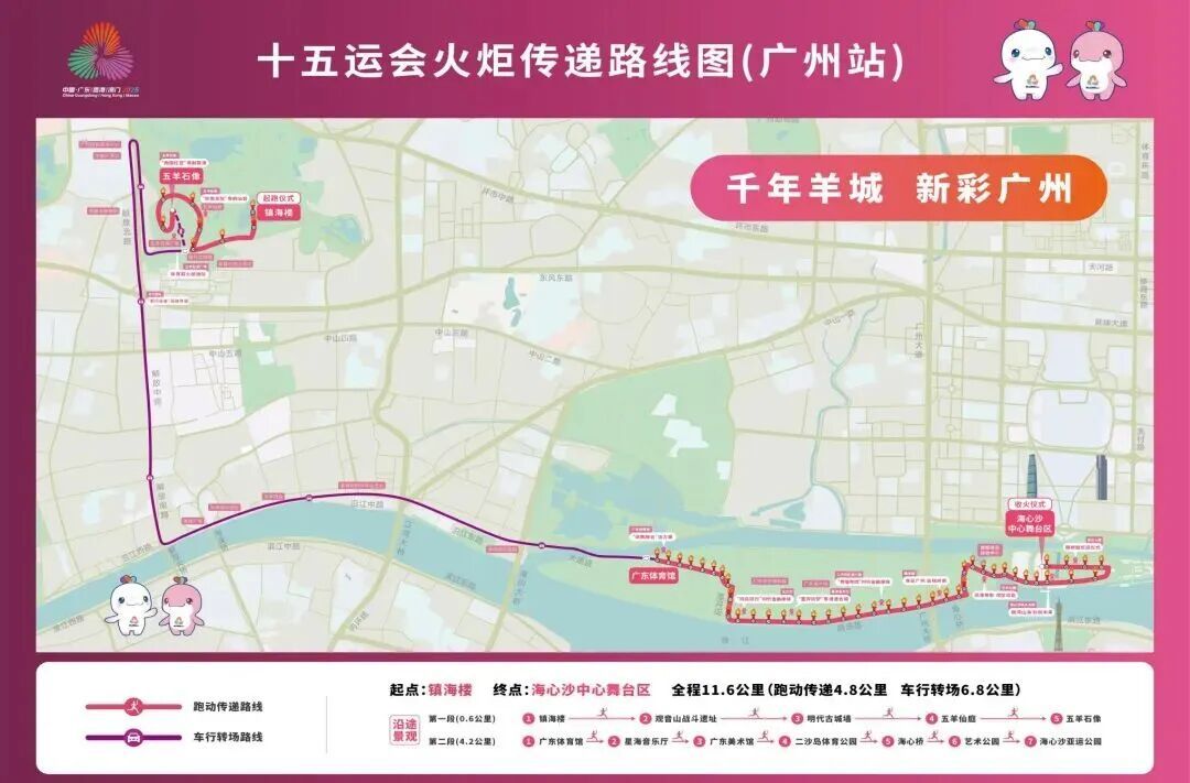 在广州,火炬以“千年羊城 新彩广州”为主题,从镇海楼出发,途经海珠广场、珠江新城至海心沙亚运公园,串联古今地标,展现岭南首府的厚重底蕴与现代活力。无人驾驶火炬车穿行历史街区,成为“老城市新活力”的象征,二沙岛与星海音乐厅的文化乐章交织出花城的开放与温度。